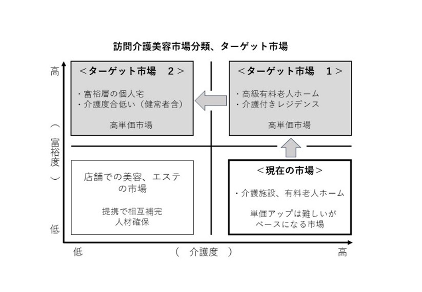 ターゲット事業領域区分の図(北村氏が作成した事業計画書より抜粋) - フットケア(足の爪ケア)という専門メニューの追加